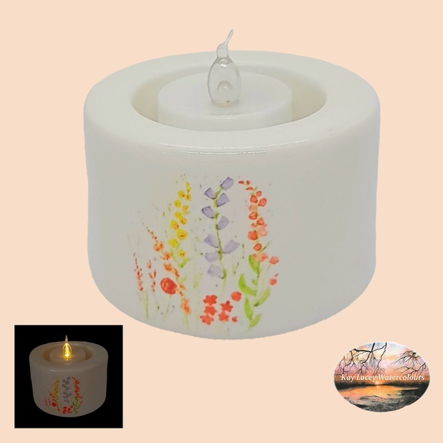 Ceramic Tealight Candle Holder including LED tealight candle
