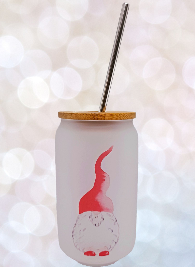 Frosted Glass Tumbler - Santa Gnome