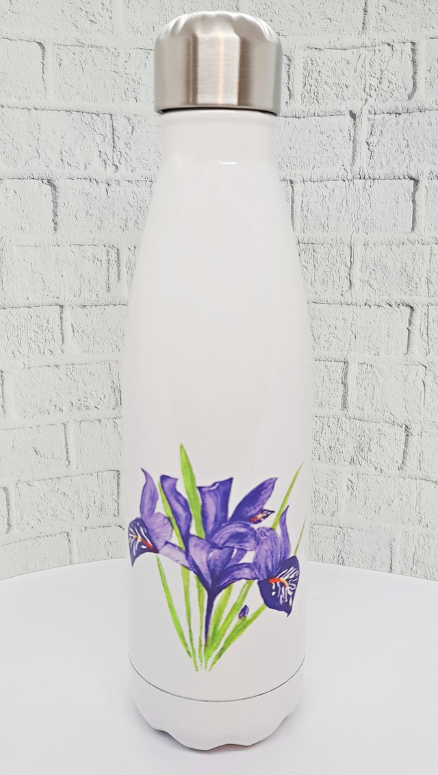 Stainless Steel Water bottle featuring my Iris artwork ‘Iris reticulata’ on both sides.