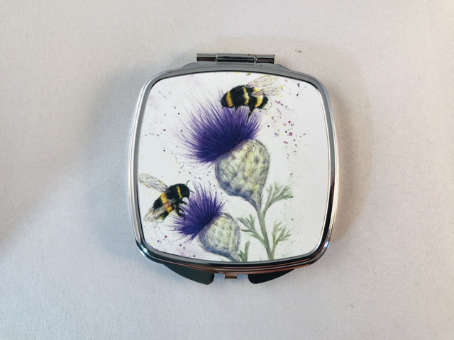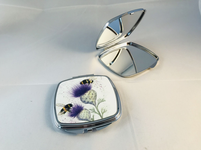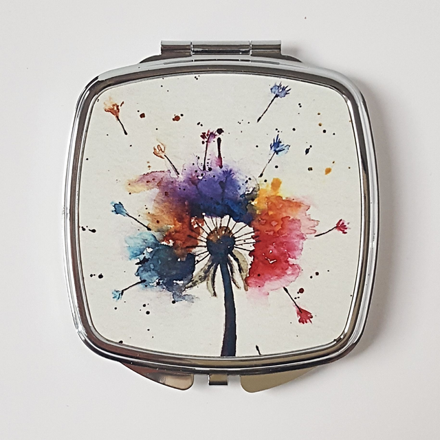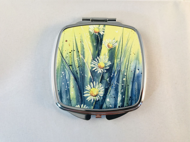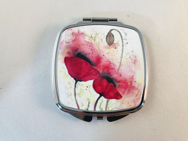 Mirror Compacts featuring unique floral artwork taken from Original painting by Kay Lacey Watercolours.