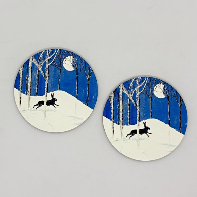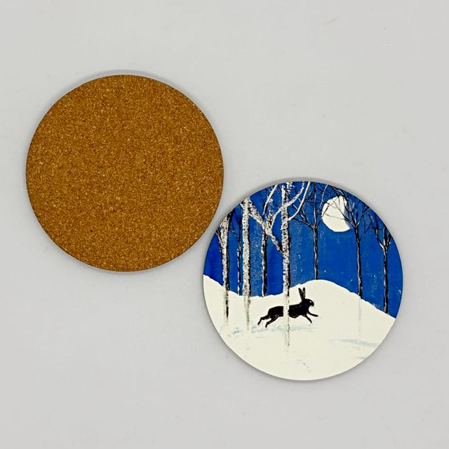 Moon Chasing Hare art Coaster with cork base