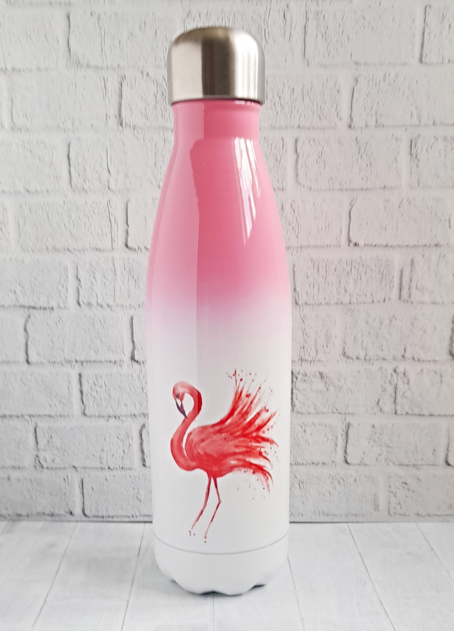 Stainless Steel Water bottle featuring my artwork ‘Pretty in Pink’ on both sides. With a coordinating colour gradient from the top down to the artwork.